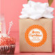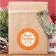 Sticker holiday gift tags with a orange polka dot background. The "Merry Christmas" greeting and who it is from can be changed.