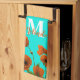 Printed with pretty and colourful artistic image of sunset orange poppy flowers in turquoise ocean colour background, with text templates for monogrammed initial and name. You may change the background colour as you like!