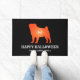 Orange Pug Happy Halloween Custom Family Name Doormat