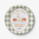 Orange Pumpkin Gingham Silly Goose Baby Shower Paper Plates