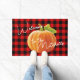 Orange Pumpkin On Black Red Check Pattern Welcome Doormat