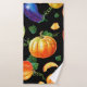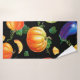 Orange pumpkin, Striped zucchini, blue eggplant on Bath Towel