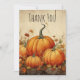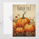 Thank you card with a rustic illustration with orange pumpkins and fall leaves. A rustic grunge vibe.