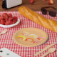 Cute retro style orange rainbow design with pink and yellow. Arty and boho theme design for warm Summer colours.