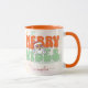 Colourful retro groovy typography customisable script coffee mug. The design features the text "Merry Vibes" in orange and green groovy typography with kawai-themed elements and stars. The name can be easily customised. Makes for the best personalised gift for yourself, your friends, family members and even neighbours. We have 45+ more Christmas designs in retro, watercolor and funny typography-based themes in our collection that you will definitely love. Merry Christmas!