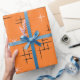 Retro wrapping paper with pastel pink stars and black abstract lines pattern in 50s-60s Mid Century Modern style on an orange background. For a different background color click Customize then pick from the color swatches.