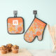 Orange Retro Flower Pattern Oven Mitt & Pot Holder Set