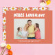 Orange Retro Groovy Peace Love Joy Typography Photo Holiday Card