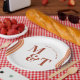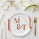 These wedding plates feature seventies stripes and retro typography in a modern monogram layout. Add a fun and festive touch to your celebration with personalised paper plates for weddings, birthdays and other parties. With your table décor being one of the most prominent elements in the look of your wedding reception, consider using personalised wedding plates for a signature detail to complete any concept. All colours can be personalised as well. Easily edit wording for your event.