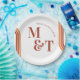 Orange Retro Seventies Stripes | Wedding Monogram Paper Plate