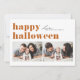 Orange Retro Typography Happy Halloween Two Photo Holiday Card
