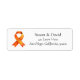 Show your strength and support with this personalised address label featuring a bright orange awareness ribbon. The orange ribbon represents causes such as leukaemia, multiple sclerosis (MS), self-harm awareness, and gun violence prevention. Perfect for advocacy or personal use, customise the right-hand side with your name and address to spread awareness with purpose.