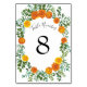 Orange Roses Wedding Floral Modern Table Number