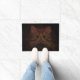 Orange, rust, copper cat photo art. Stunning cat close-up. Ginger, orange, copper, rust, purple, red, green, yellow, black colours. Black background. Awesome colours to match your home decor. Trendy, chic, modern, cool door mat. One-of-a-kind decor. Your friends will ask you where you got this. Look for matching gift items in my store collection. Image copy write Marg Seregelyi Photography.