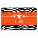 Trendy and modern Sassy Star Zebra Premium Magnet featuring a chic black and white zebra print background and a bold orange border adorned with a fun star motif. This girly design may be customised with the personalised text of your choosing. Click "Customise It" to find more personalisation options.