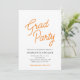This graduation party invitation features a simple design accented with orange script text that reads "Grad Party". Personalised with all your graduation celebration party details.
