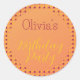 Celebrate your girl's birthday with this cute but elegant styled birthday sticker. The main background features a gradient of colours from pink, yellow, orange, and burgundy. The edge of the plate features polka dots of the same colours a little bolder.