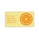 Fruity digitally created cartoon illustration mimicking the look of a freshly cut delicious orange fruit. The background colour is light yellow. There is also a customisable text area for name and address information.