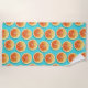 A pattern of fresh & juicy orange slices in deep shades of tangerine orange and red orange, with a watercolour texture to give it that freshly cut look. They are placed on a bright blue background for a bright & summery look.