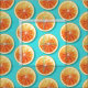 A pattern of fresh & juicy orange slices in deep shades of tangerine orange and red orange, with a watercolour texture to give it that freshly cut look. They are placed on a bright blue background for a bright & summery look.