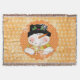Pretty Christmas holiday Orange Snowflake Snowman throw blanket with a background of orange with lots of white snowflakes, a round of white polka dots on orange, and an adorable snowman with carrot nose, black top hat, and a striped scarf and white snowflakes!