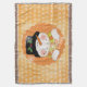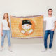 Pretty Christmas holiday Orange Snowflake Snowman throw blanket with a background of orange with lots of white snowflakes, a round of white polka dots on orange, and an adorable snowman with carrot nose, black top hat, and a striped scarf and white snowflakes!