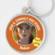This cool customized high school softball player photo gift features white typography of your team and player name on an orange keychain with a ball. Personalize with your student's photograph and class year as a proud sports parent.