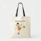 A stick figure girl ice skater wearing an orange dress on a tote bag you can easily customise with a name or other text before ordering.