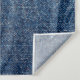 Denim fabric artistry with orange thread on a classic blue background.