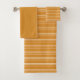 The towel set shows Orange and white irregular horizontal stripes design. The white stripes can be exchanged with any colour. For styling ideas and customisation enquiries please visit www.kbmd3signs.com