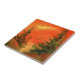 Orange sunrise pines with flying crows tile