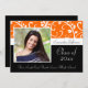 Graduation Invitations with photo and Classy orange, Black and White Design with flowers and flowing swirly vines. Cute, chic, delicate and feminine style for any girl or female graduate. Show your personal style with this beautiful photo grad invite. Great as a graduation announcement or graduation party invitation.