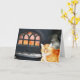 This notecard features an orange tiger cat staying cosy by the fire one winter evening in New England.