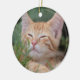 Adorable Christmas tree ornament with a photograph, of a orange tabby kitten, asleep in the grass. Great cat picture sure to please any cat lover. Great for the cat ornament collector.