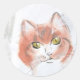 In traditional Chinese brush painting, an artist captures what the subject IS like, not simply what he or she LOOKS like. The original painting was done on rice paper. I tried to capture the kitty's sense of eager interest. He makes fun stickers! Original art by Ren Adams.