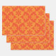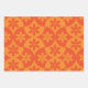 Orange Tangerine Flowers on Mid Century Scallop Wrapping Paper Sheet