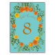 Orange & Teal Aqua Peony & Rose Floral Wedding Table Number