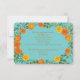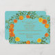 Beautiful Orange & Teal Aqua peony & rose floral wedding invitations with abundant greenery. Perfect for a floral theme or traditional white wedding in the Spring or Summer. Customise the colour and text to make this wedding invite your own!