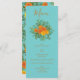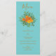 Orange & Teal Aqua Peony & Rose Wedding Menu