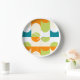 Orange Teal Blue Lime Green Retro Art Pattern Clock