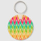 Orange Teal Ikat Chevron Zig Zag Stripes Pattern Key Ring