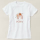 This adorable t-shirt features trendy boho style and trendy handwritten script. A terracotta and neutral cute painted rainbow is decorated with orange and peach watercolor flowers on a simple white background, and the shirt says "mama" with a spot to add your baby's name. Perfect for the new mother to wear to her baby shower.