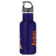 Fun bright orange steam locomotive train drinks bottle perfect for a young train enthusiast, model train builder or trainspotter. Customise with your son's full name and first name on train. Currently reads "Ayden Stephens". Illustrated and designed exclusively by Sarah Trett.