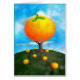 Environmentally friendly concept illustration of a orange tree growing a giant orange with lots of little oranges strewn around the ground. Image available on various gifts and products.
