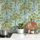 Elevate your home decor with this exquisite vintage wallpaper featuring a beautiful 'Orchard' pattern, inspired by the timeless designs of William Morris. This intricate design showcases large blue and green acanthus leaves intertwined with small orange trees bearing oversized oranges and lush green foliage. Set against a pale background adorned with small blades of grass and delicate red flowers, this wallpaper brings a touch of nature's beauty indoors. The harmonious blend of colours and detailed botanical motifs create a serene and sophisticated atmosphere, perfect for enhancing the decor of any room. Ideal for feature walls, living rooms, bedrooms, or dining areas, this wallpaper effortlessly combines classic elegance with natural charm.
