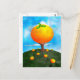 Environmentally friendly concept illustration of a orange tree growing a giant orange with lots of little oranges strewn around the ground. Image available on various gifts and products.