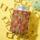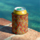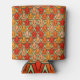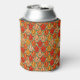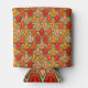 This can cooler has an art deco design of tulips from pentagons and trapezoids in different shades of orange.