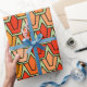 This wrapping paper has an art deco design of tulips from pentagons and trapezoids in different shades of orange.