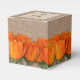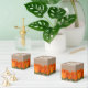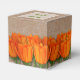 Bunches of orange tulips surround a kraft paper patterned 2" square party favor box. Personalize the front and the top with your wording or delete it. Click CUSTOMIZE button to CHANGE the fonts and font colors. COORDINATING items available in our store. Wedding invitations, RSVP Cards, Reception Cards, Thank You Notes and more. See the entire collection at ---> http://bit.ly/2LGtAf0 <---