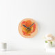 This awesome clock features a beautiful photograph of an orange tulip in full bloom. The photo was taken using macro photography to really bring out the subtle shades of orange in this flower and the fine detail of its petals. The flower has been cut from the photo and put on a pale orange background to enhance its beauty.